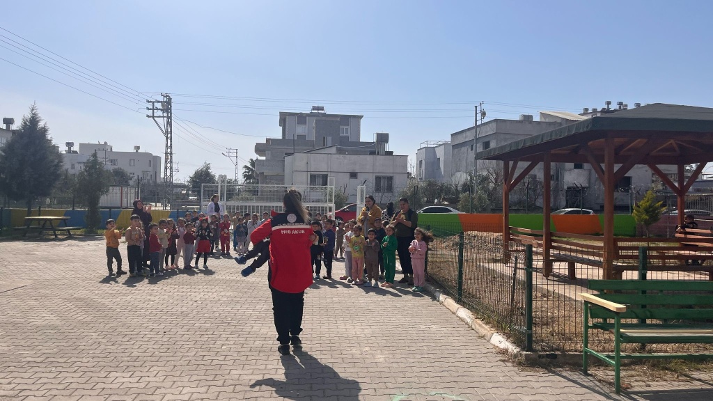 Okulumuzun değerli öğretmeni aynı zamanda MEB AKUB üyesi Meral GÜLEÇ ,tüm öğretmen, öğrenci ve personelerimize deprem öncesi, deprem sırasında ve deprem sonrasında neler yapılması gerektiğini anlattı. Ardından deprem tahliye tatbikatı yaptırdı.
